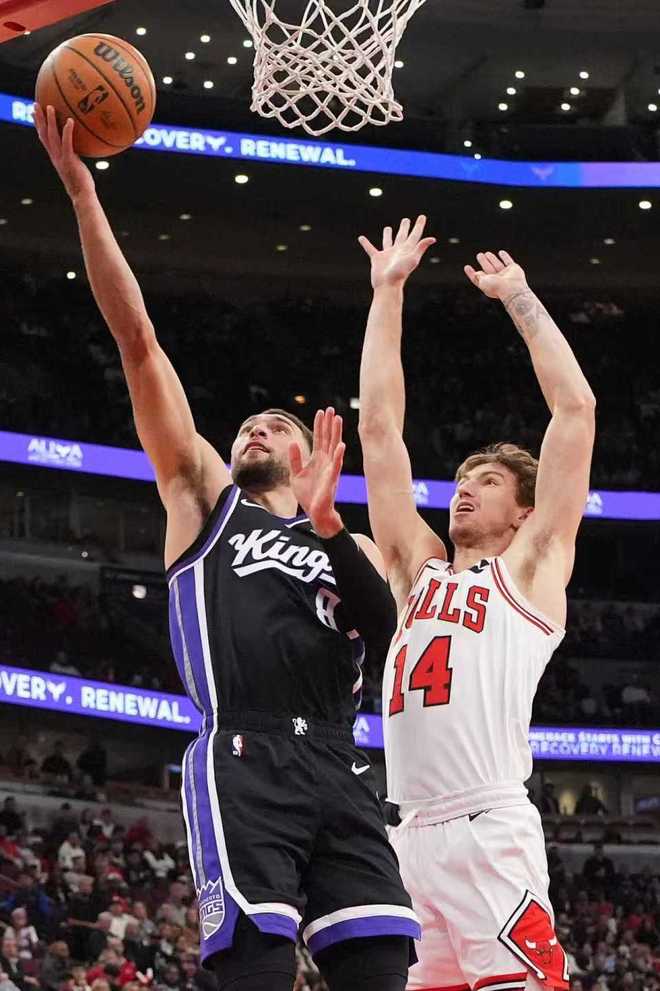 中场休息回来,公牛在布泽利斯、吉迪与武切维奇攻传结合表现引领下,他们第三节疯狂起势连续进攻压制国王,尤其是第三节疯狂轰下39分。国王同样多点开花应对,但难以阻挡公牛的持续攻势,国王单节27-39输掉12分,三节结束国王91-101被公牛反超10分。前三节比赛,拉文20分与小萨博尼斯14+8+5,引领国王5人得分上双,布泽利斯25分与吉迪14+7+11,引领公牛4人得分上双。